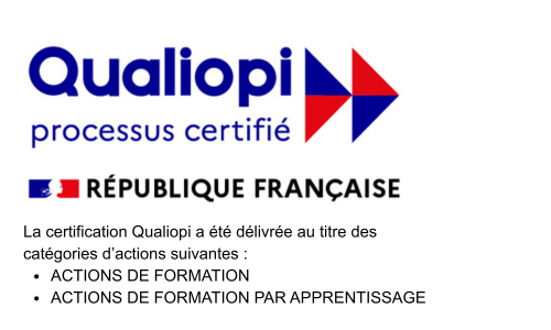 Notre certification Qualiopi garantit la qualité de nos actions de formation. Elle atteste que nous respectons les exigences nationales en matière de pédagogie, d’accueil, d’accompagnement et de suivi des apprenants.